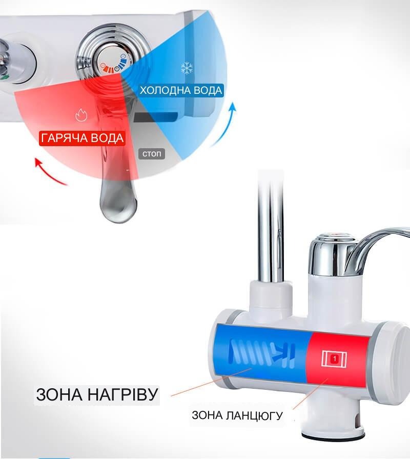 Установка проточного електронагрівача для води дозволить заощадити не тільки електроенергію, а й воду, тому що нагрівання води відбувається лише тоді, коли це потрібно вам. Потужність цього пристрою дозволяє нагрівати воду до 60 C за 2-3 секунди. Більше не потрібно нудитися в очікуванні, поки вода стане необхідної температури. Адже за допомогою крана-нагрівача можна регулювати температуру води на свій розсуд, просто поверніть ручку, і вода зміниться від теплої до гарячої.