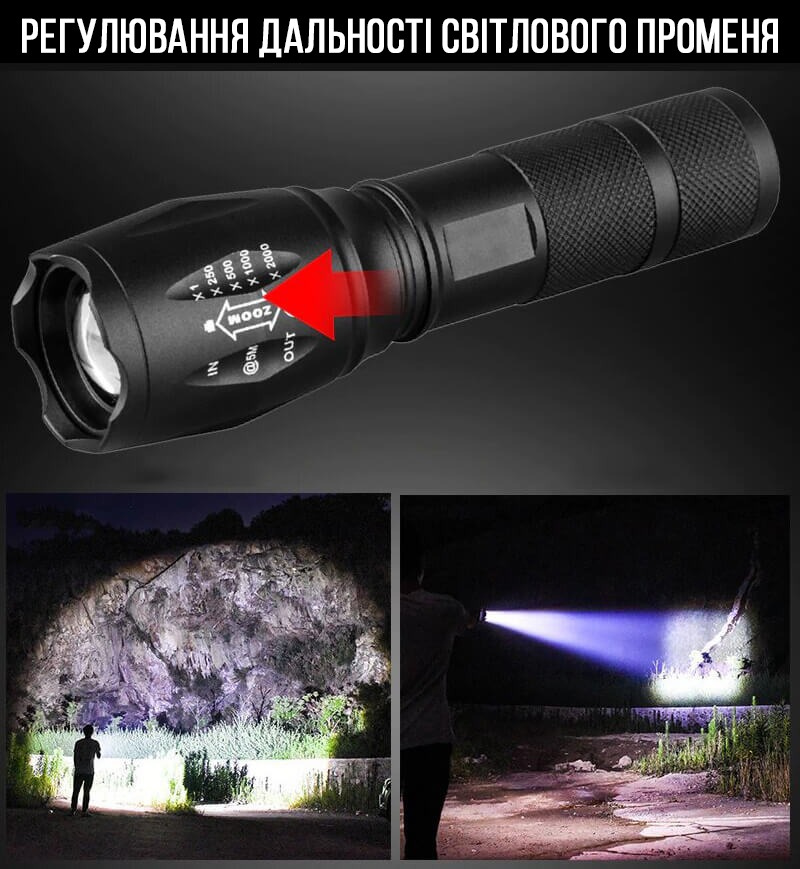 Ліхтар світлодіодний акумуляторний - має невеликі розміри, зручно поміщається в руці та кишені. Корпус виготовлений із міцного сплаву авіаційного алюмінію з анодуванням. Яскравий світлодіод Cree T6 працює від найпоширеніших акумуляторів типорозміру 18650.