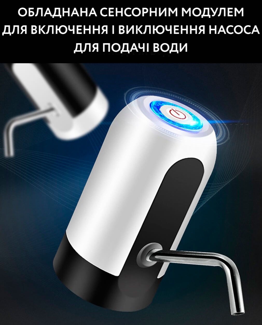 - Вам більше не потрібно натискати на пневматичну кнопку, щоб набрати води з сулія, достатньо лише торкнутися сенсора помпи.