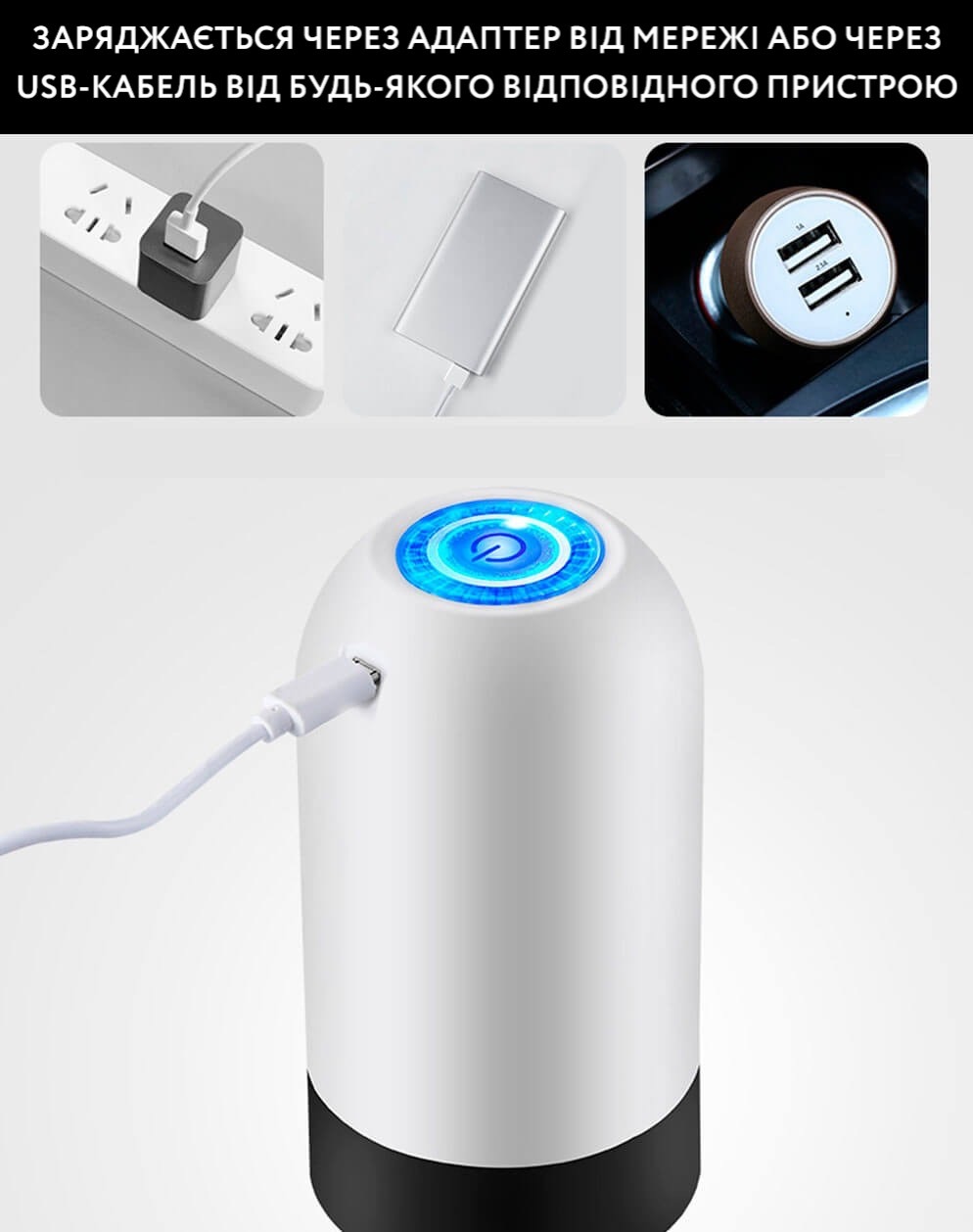 - Електронна помпа допомагає вам чітко та без проливань набрати необхідну кількість питної води з сулія.