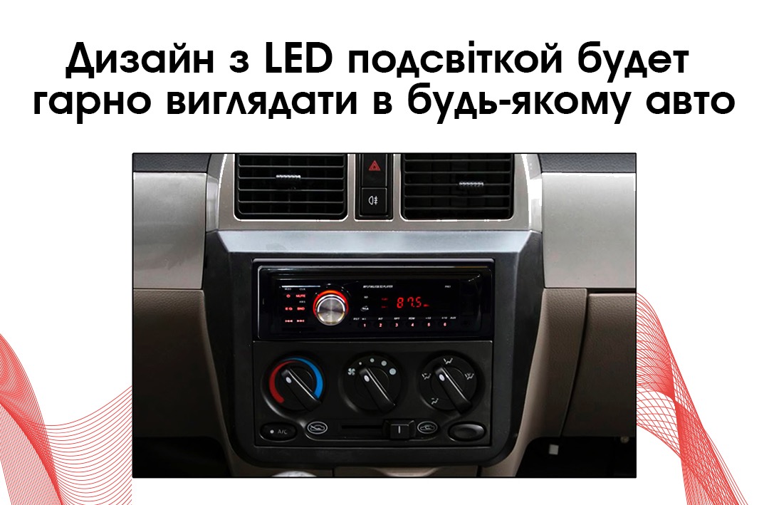 Сучасна та функціональна автомагнітола має FM-тюнер з автоматичним настроюванням, 18 каналів з швидким доступом, відтворення файлів з USB і карток SD, ЖК дисплей, цифровий годинник.