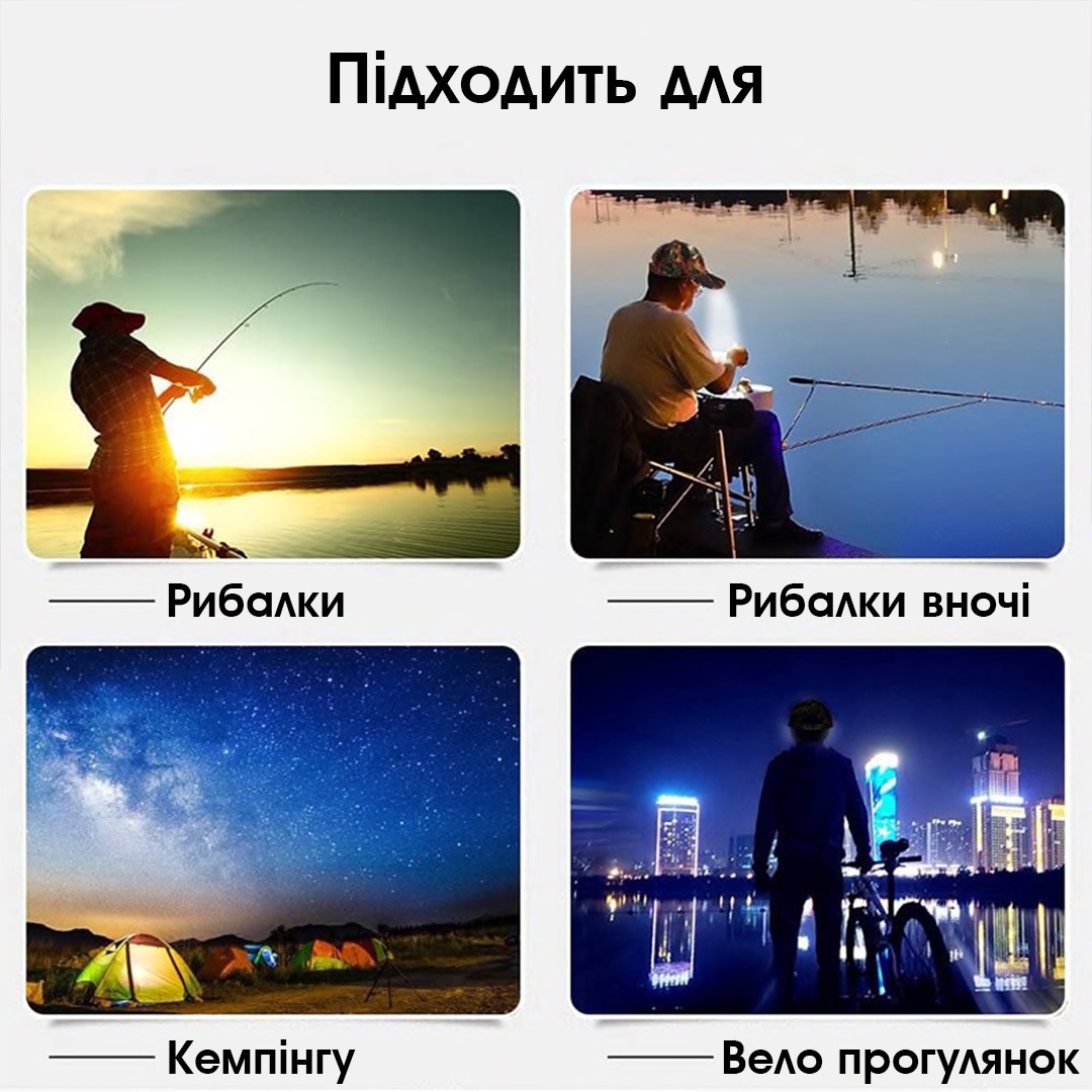 1. Оснащена 5 LED міні-ліхтарями, промінь світла до 10 метрів;2. Дуже зручно носити ввечорі та уночі, на рибалку, піші або велопрогулянки;
