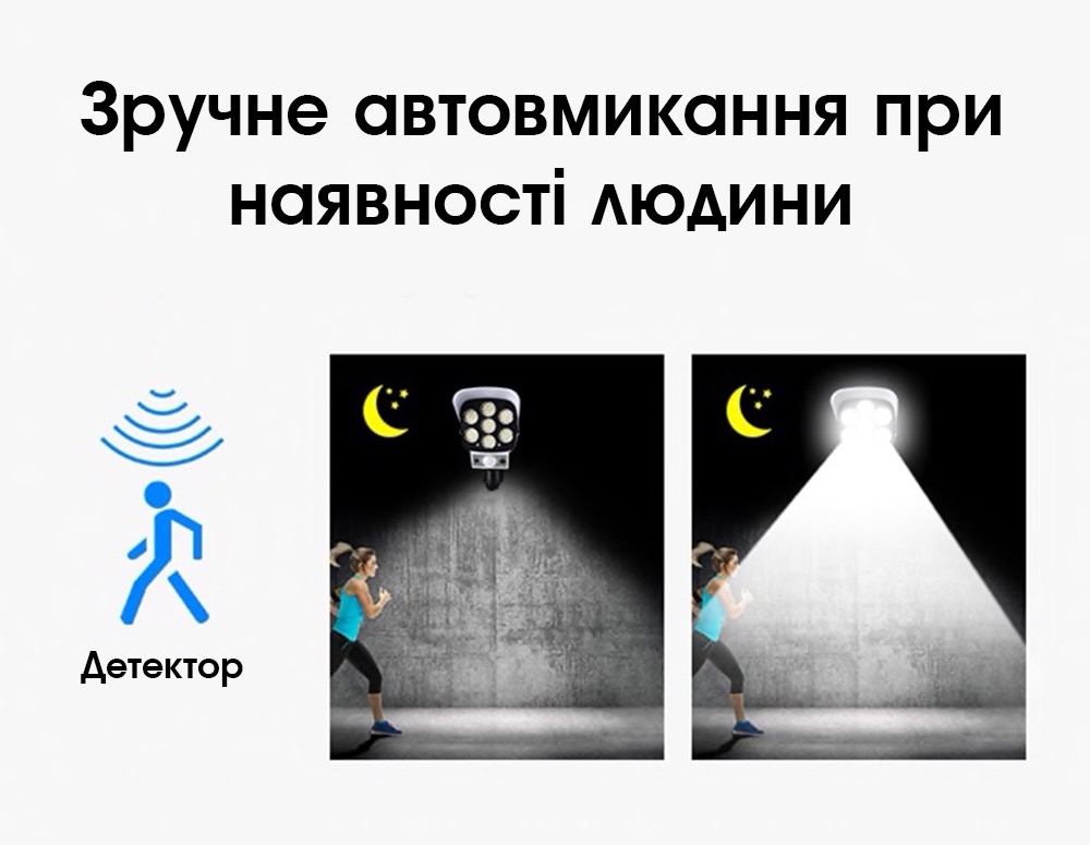 Світло автоматично включається при виявленні датчиком поблизу людини або автомобіля;