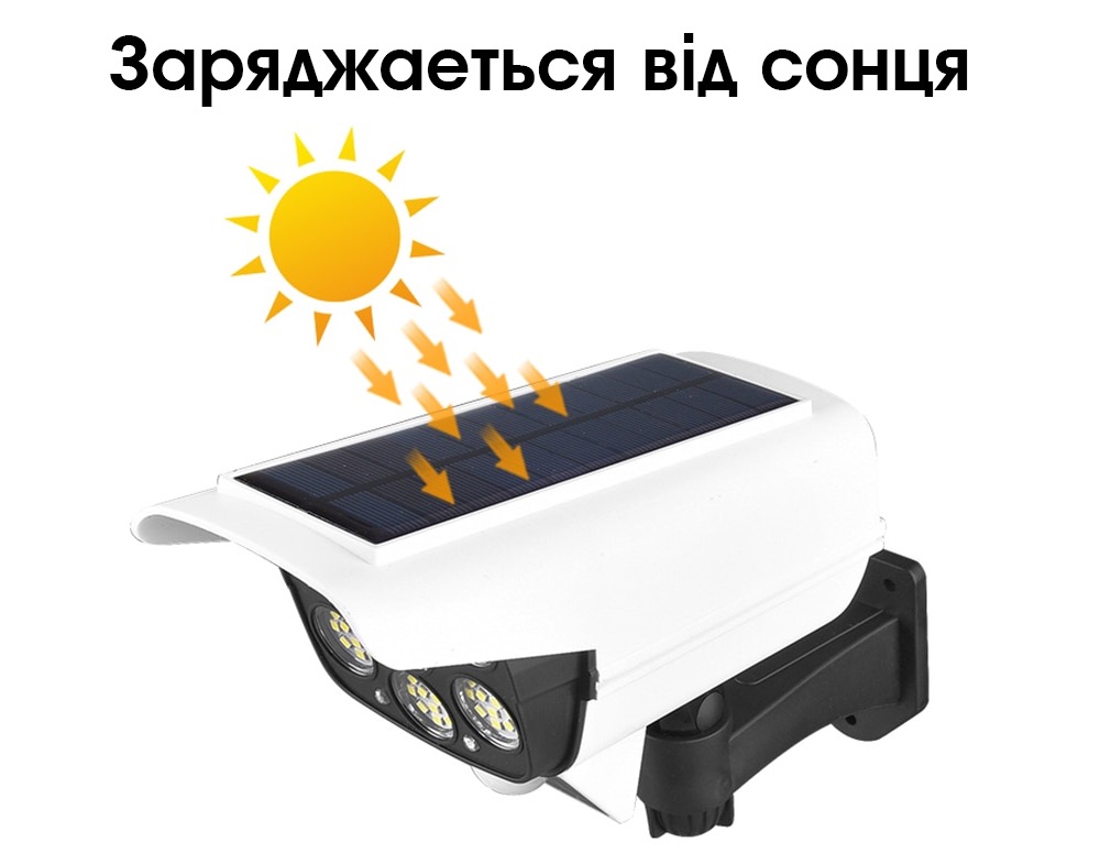 Родзинкою є схожість з камерою відеоспостереження. Тому такий ліхтар одним видом відлякає злодіїв.