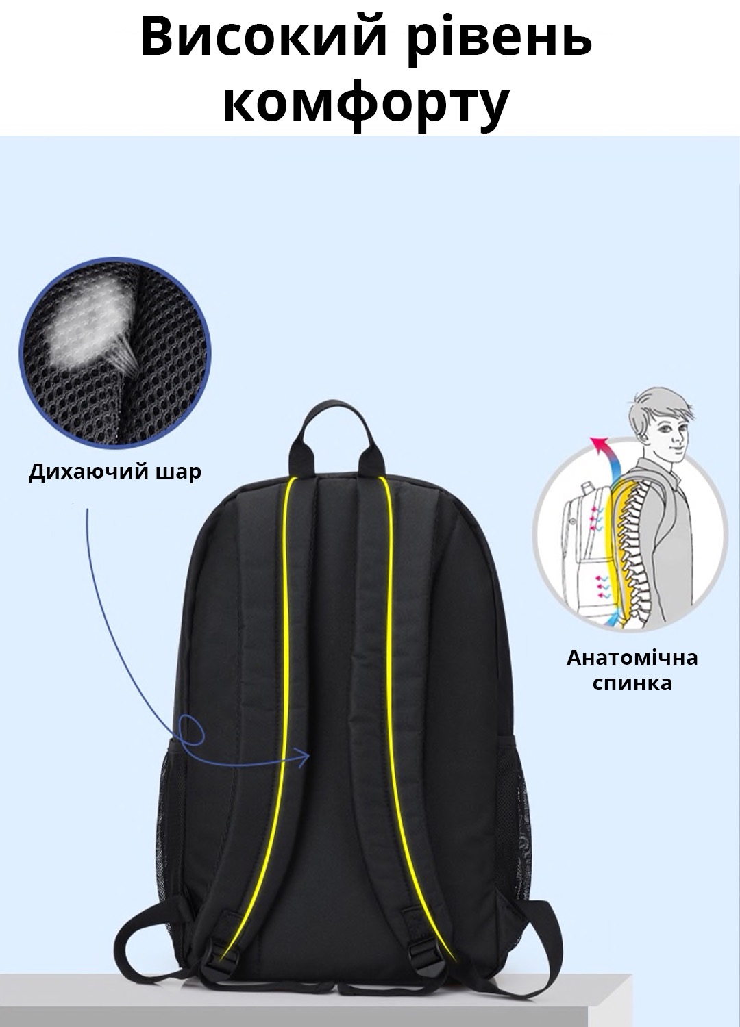 Рюкзак можна брати з собою в школу, на роботу, навчання, подорож, різні гуртки, тренування або повсякденні прогулянки. Рюкзак практичний у використанні. Його можна носити з допомогою короткої ручки в руках, а також на плечі за допомогою ремінцiв, які можна регулювати.