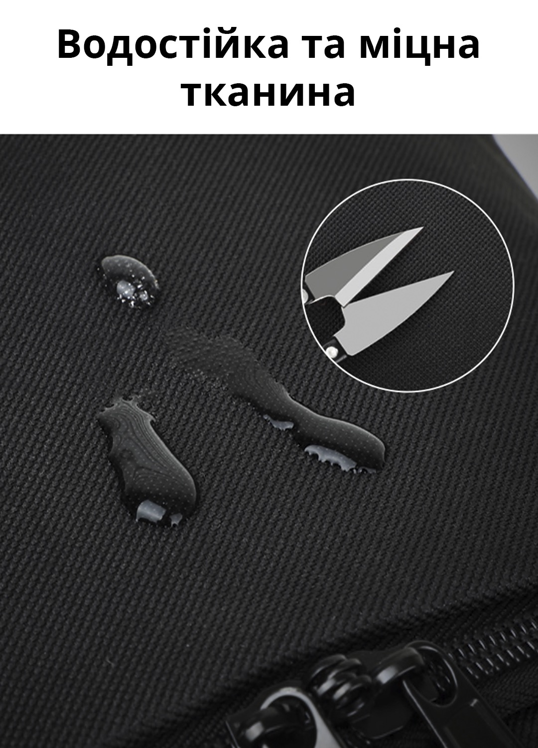 Рюкзак виготовлений з міцної і водовідштовхувальної спортивної плащової тканини, яка легко чиститься, практична у використанні і добре виглядає. Виріб має два відділення на блискавці. В основному відділення є відділення для ноутбука на ліпучці.