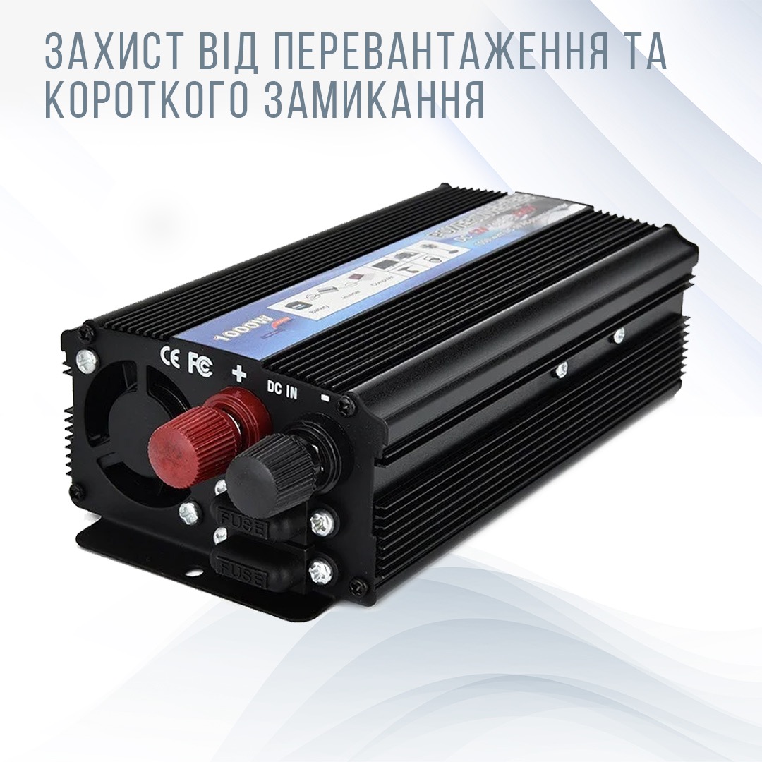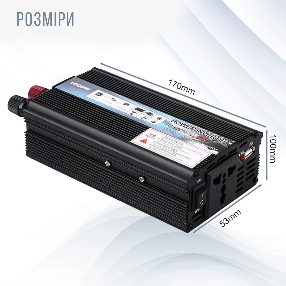 Автомобільний інвертор 1000W - перетворювач напруги 12V-220V - альтернативне харчування приладів, що працюють від мережі.