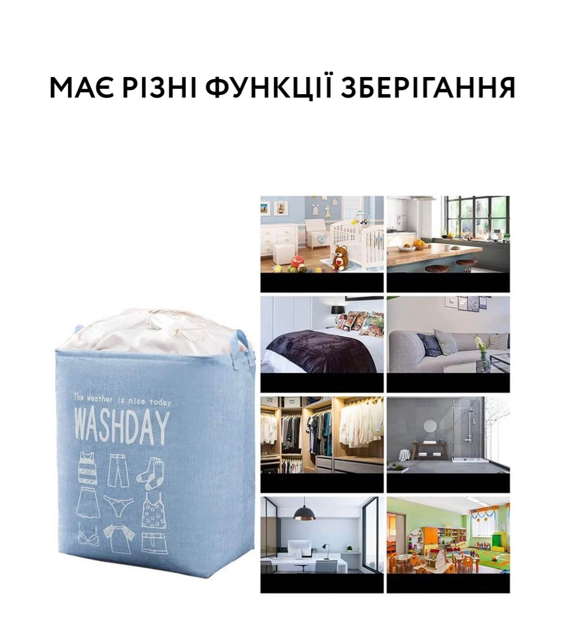 Кошик буде незамінним помічником у Вашій оселі для акуратного зберігання речей, білизни, іграшок. Складаний кошик дуже легкий, не займає багато місця і має оригінальний дизайн.