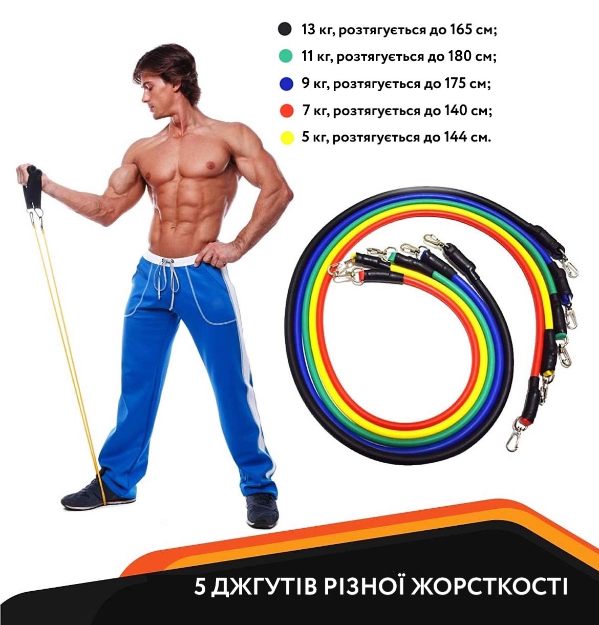 - 5 трубчастих еспандерів різного рівня опору.