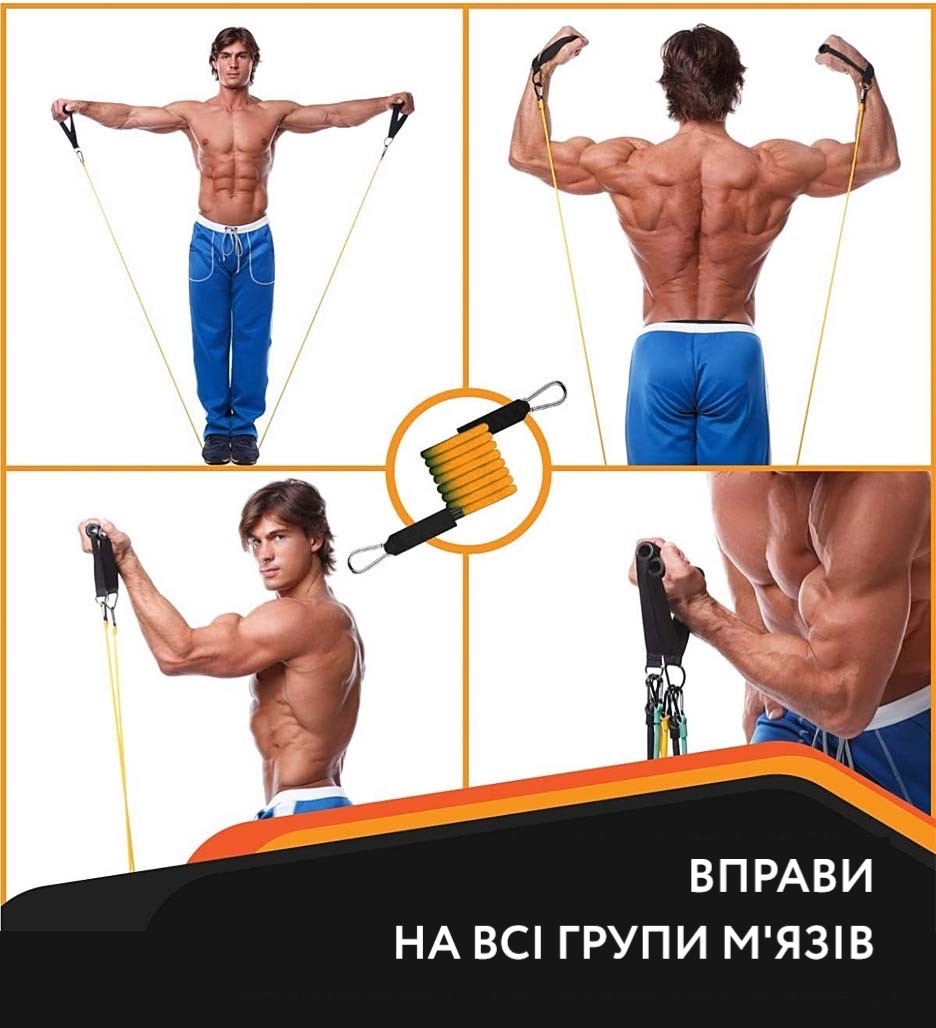 Також набір еспандерів використовуються для реабілітації після травм. Не містить шкідливих здоров'я речовин.