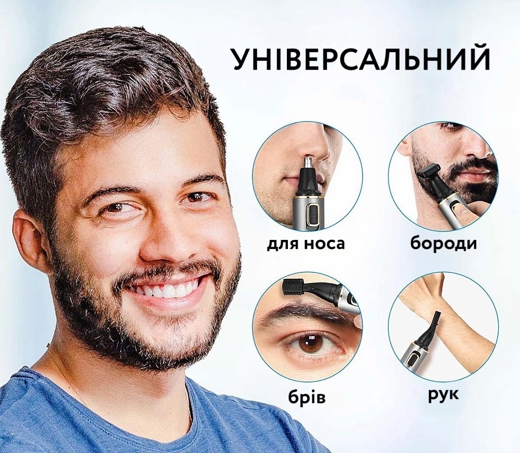 Тример для бороди, вусів, брів, носа та вух — це зручний та універсальний пристрій, який задовольнить ваші різні потреби у догляді.