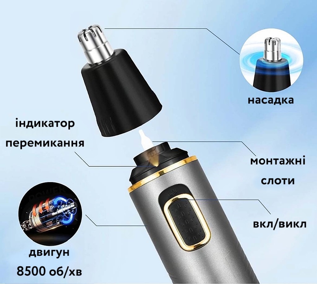 Акумуляторний триммер для носа, бороди та вусів з підставкою