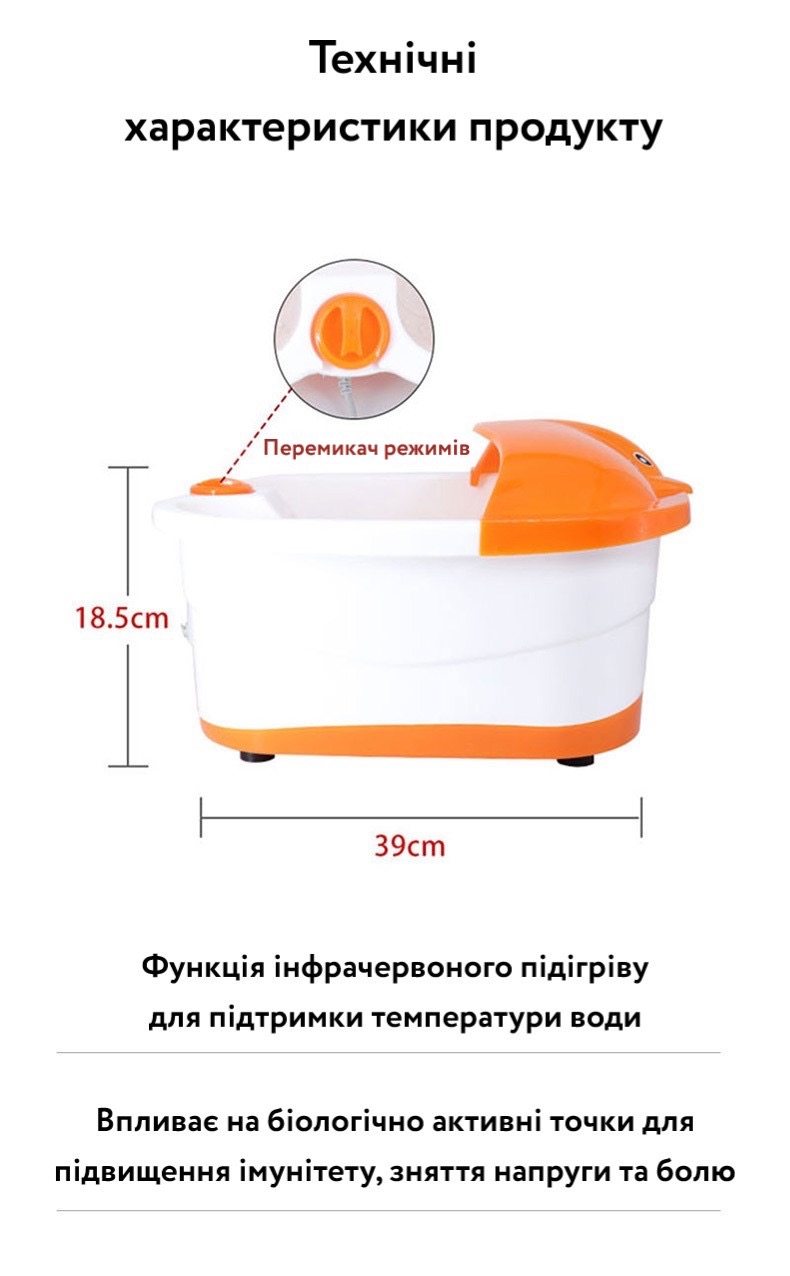 Гідромасажна ванна для ніг електрична. 3 режими роботи. Нагрівання води.