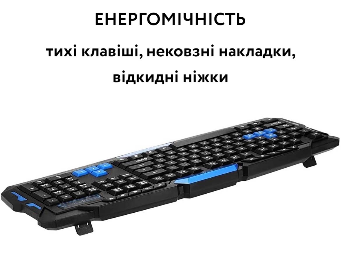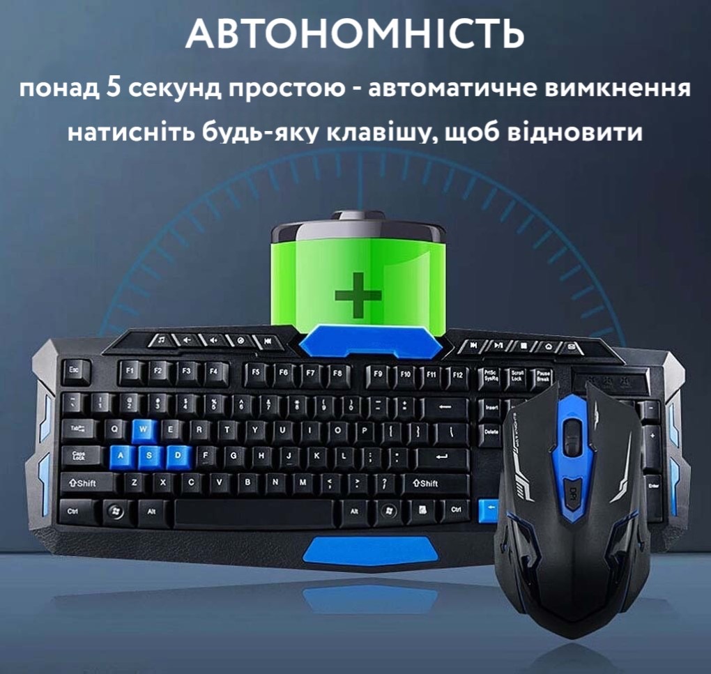 - • Електроживлення: клавіатура: 2 батареї ААА; миша: 2 батареї ААА (не входять до комплекту)