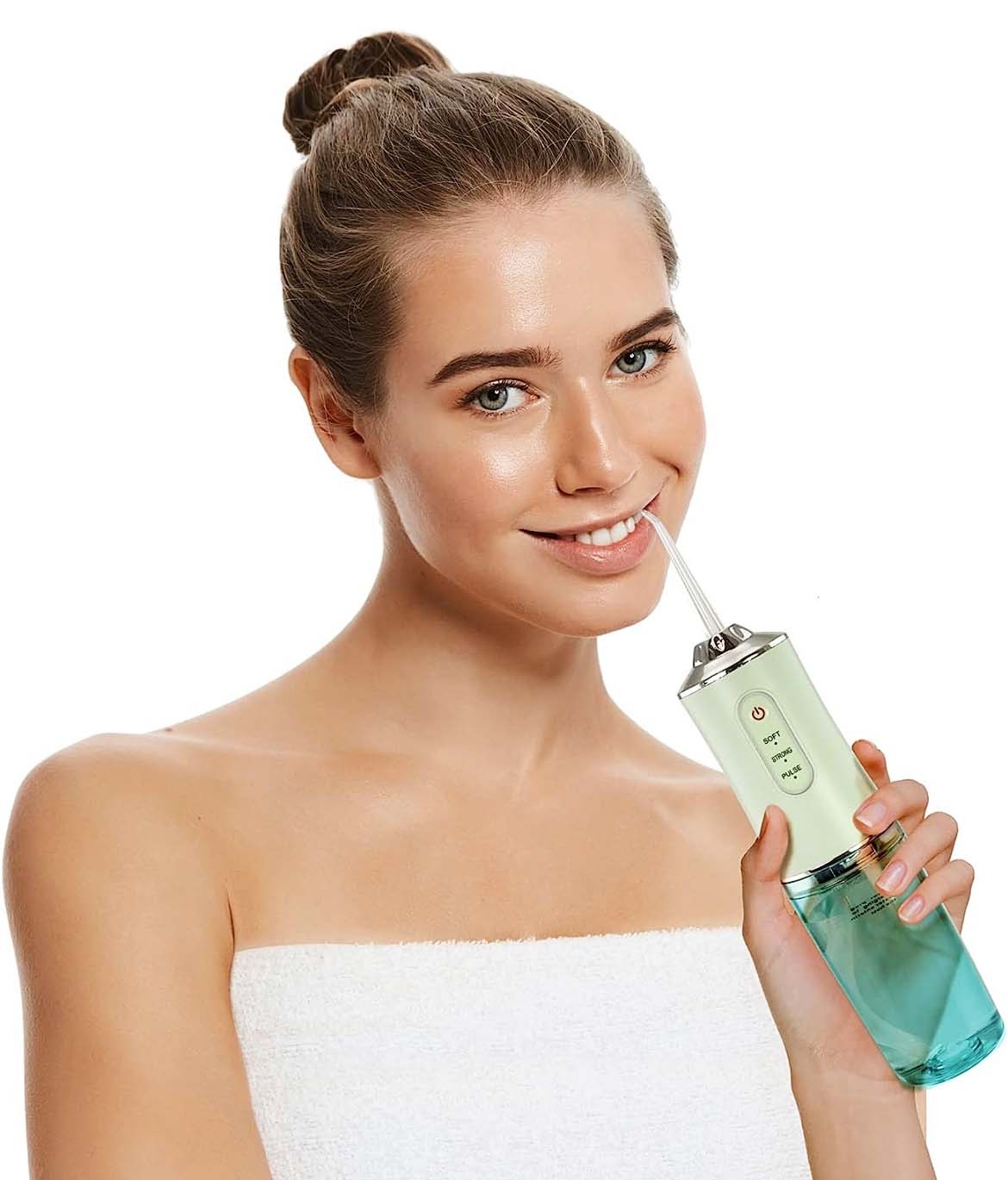 Великий резервуар для води на 220 мл, підходить для полоскання рота кілька разів на день. Резервуар для води знімний, його легко наповнювати та чистити. Зубний іригатор має 3 режими: включення / вимикання і перемикання швидкостей, а також сопло, що обертається на 360 °, так що ви можете легко очистити важкодоступні місця порожнини рота, подбати про брекет-системи і імпланти (просторах між зубами, зубоді м'який масаж і покращити кровообіг ясен.