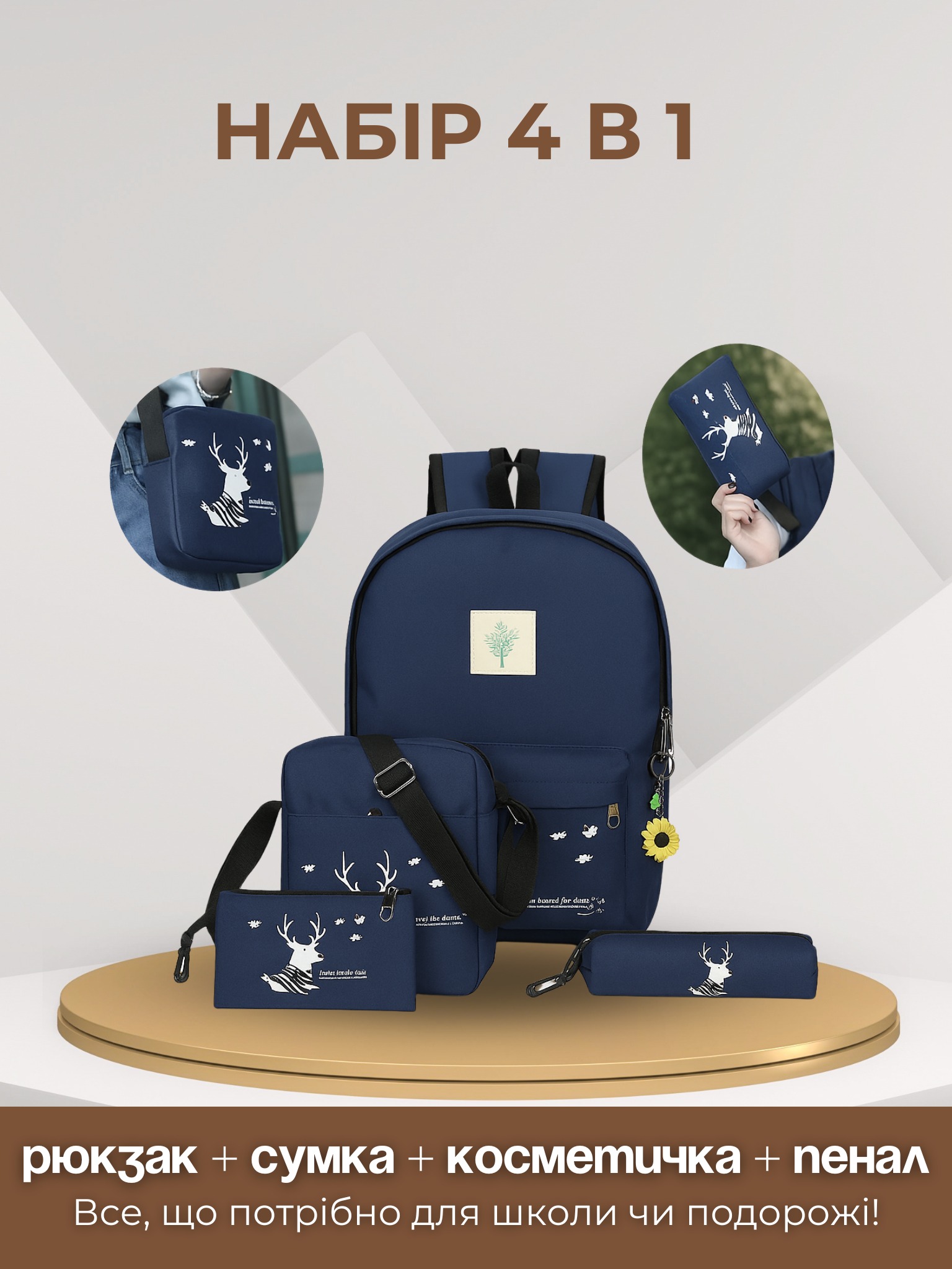 Набір сумок 4в1. Рюкзак, сумка, косметичка, пенал синій