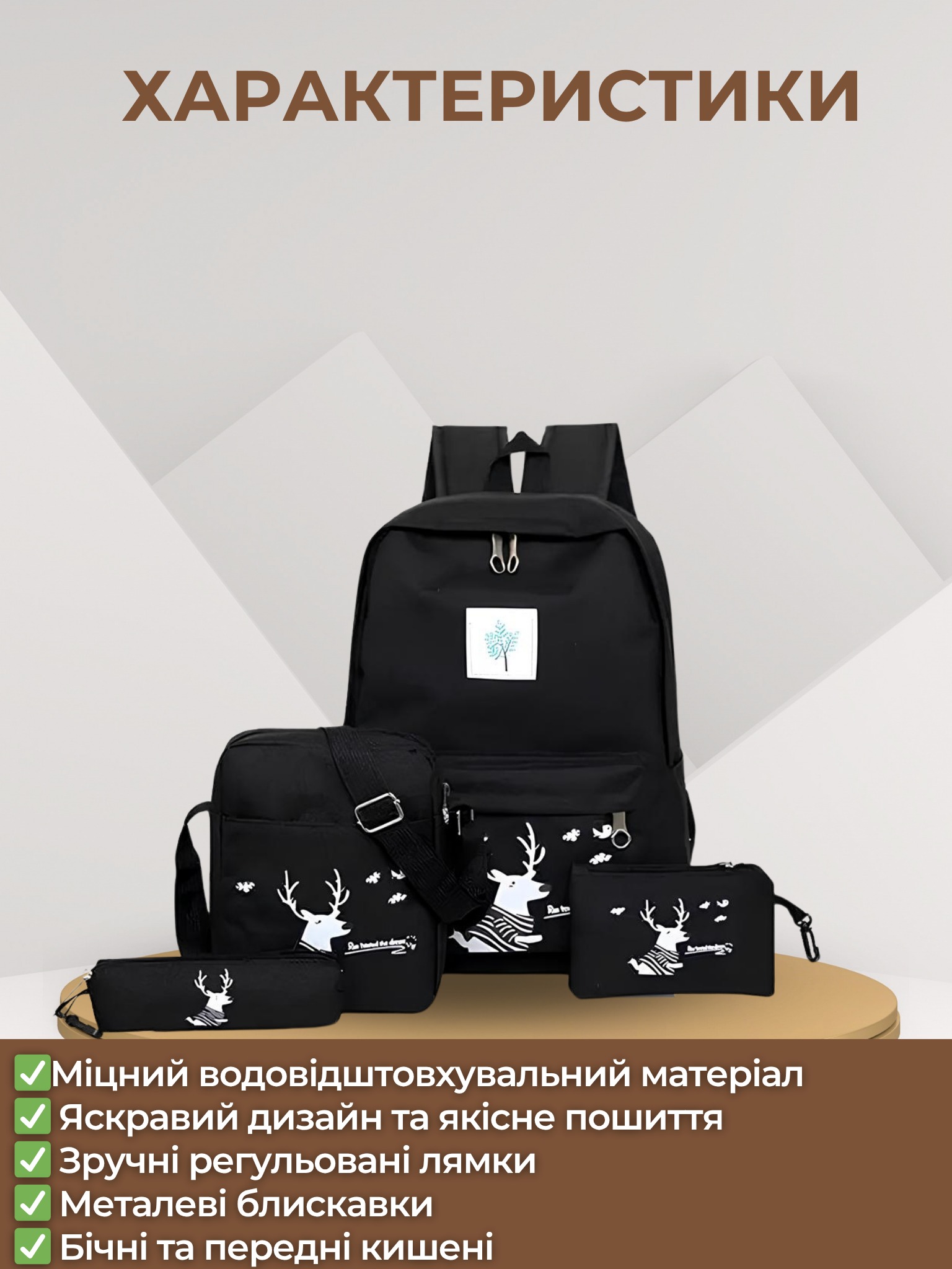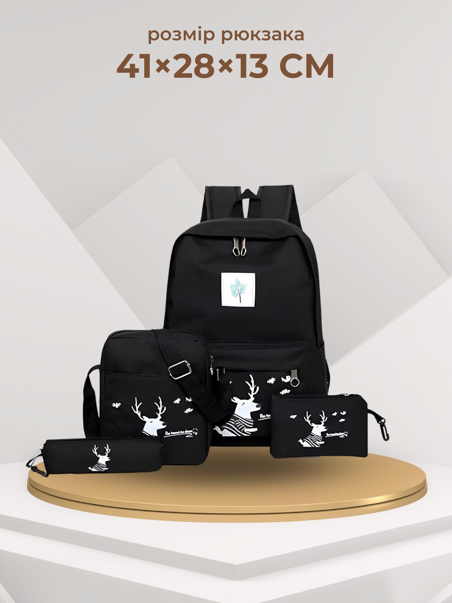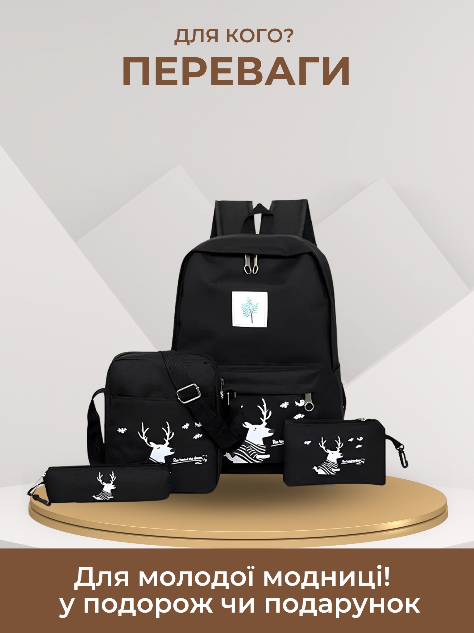 Набір сумок 4в1. Рюкзак, сумка, косметичка, пенал чорний