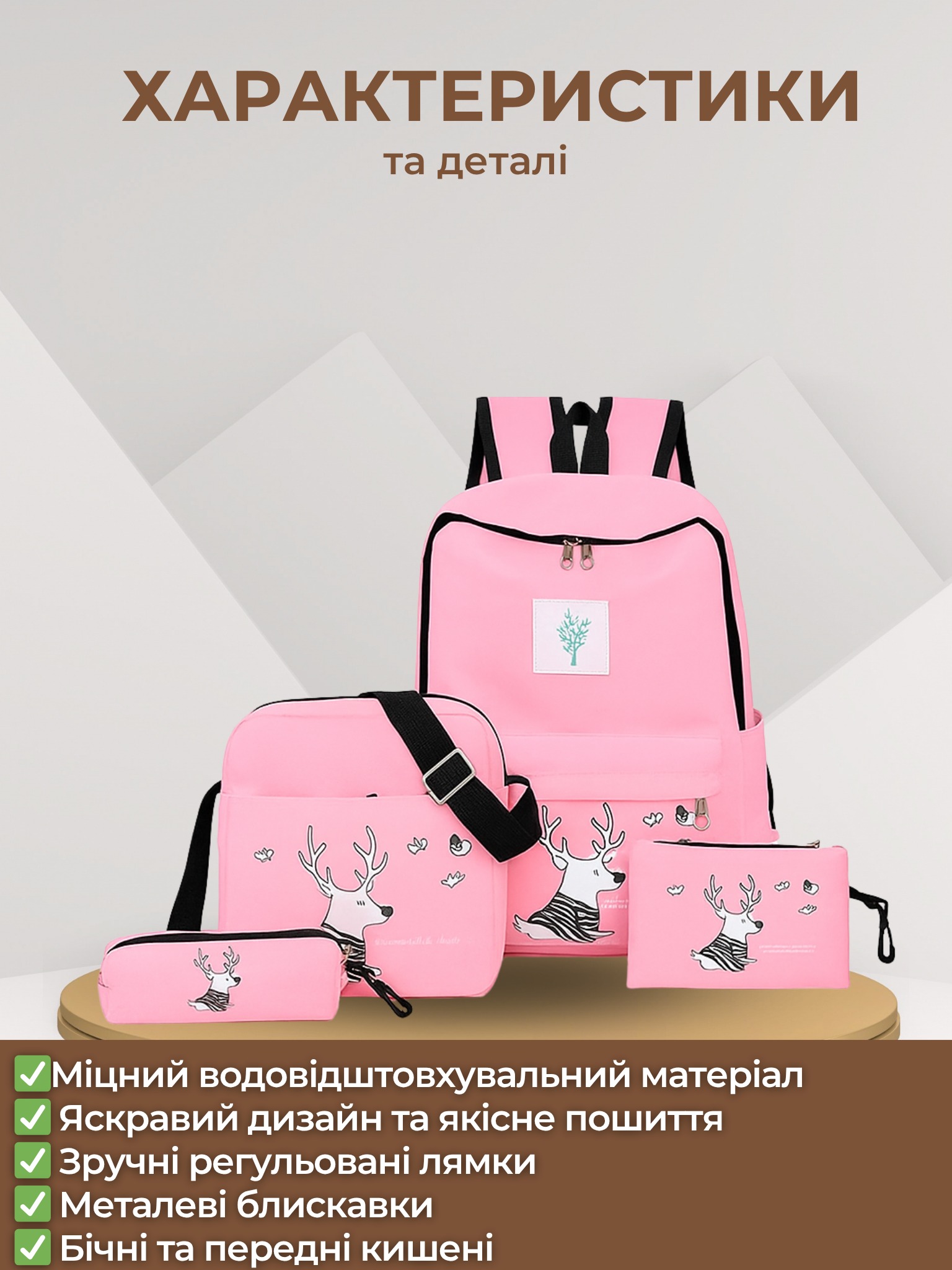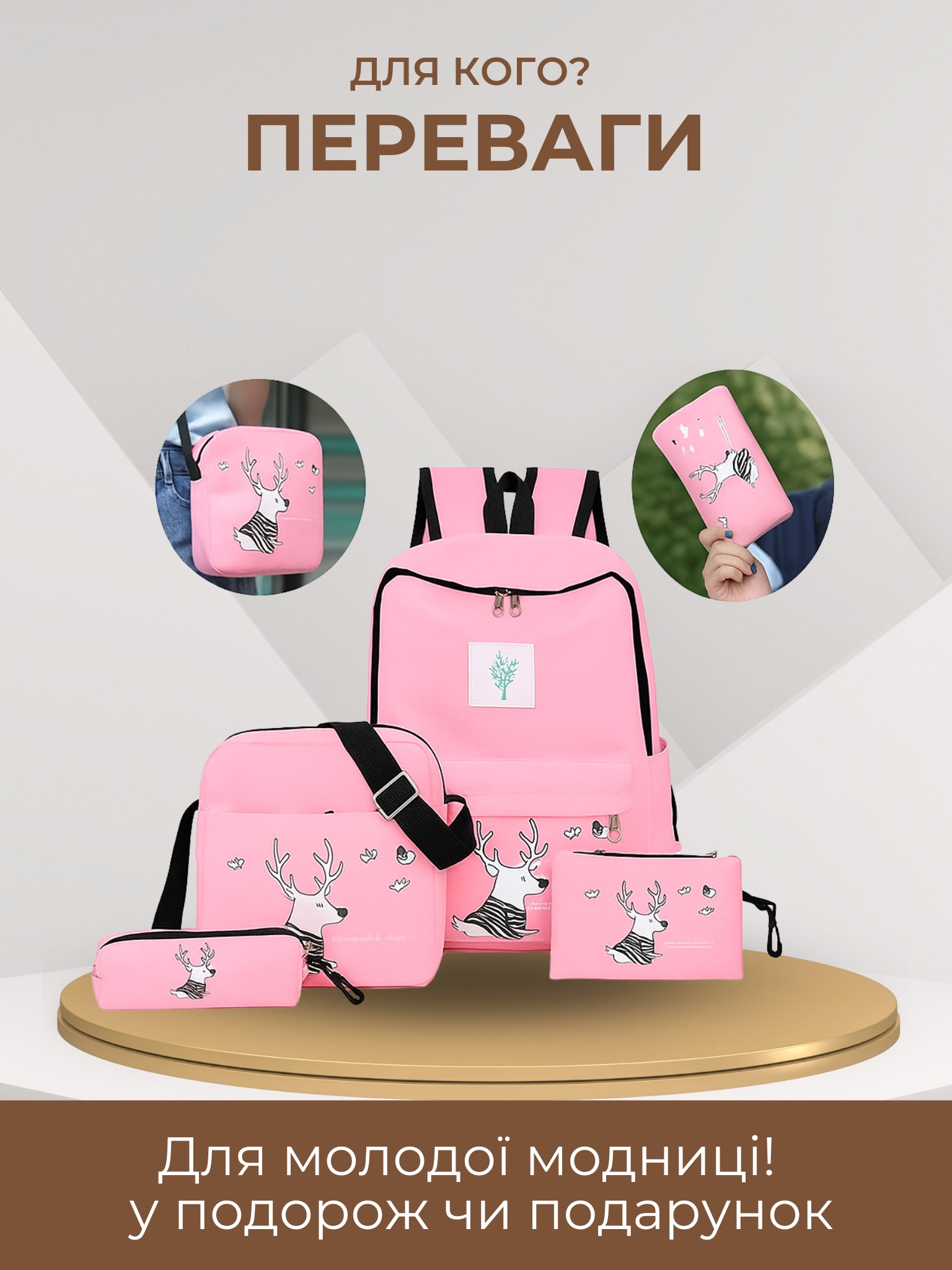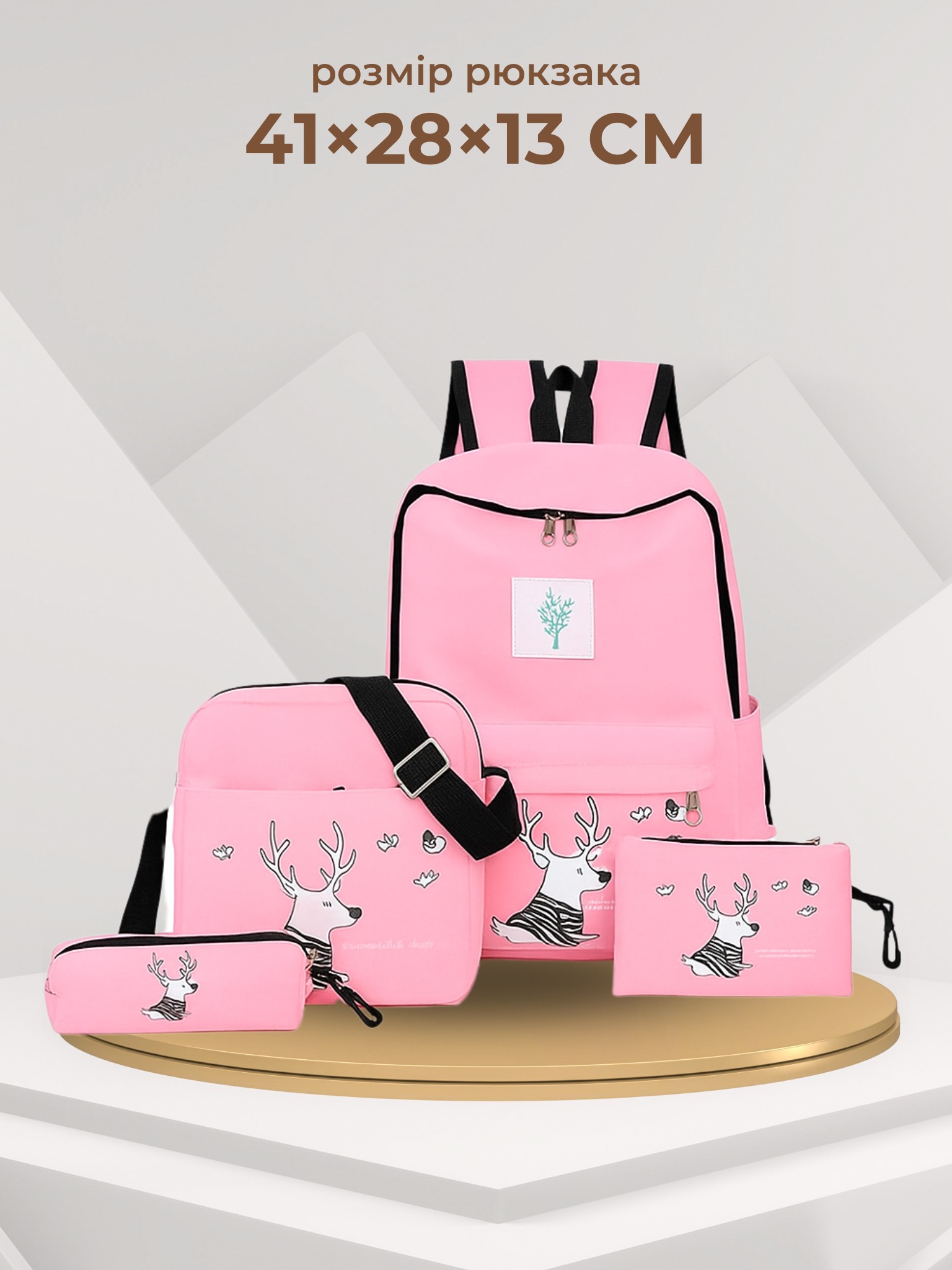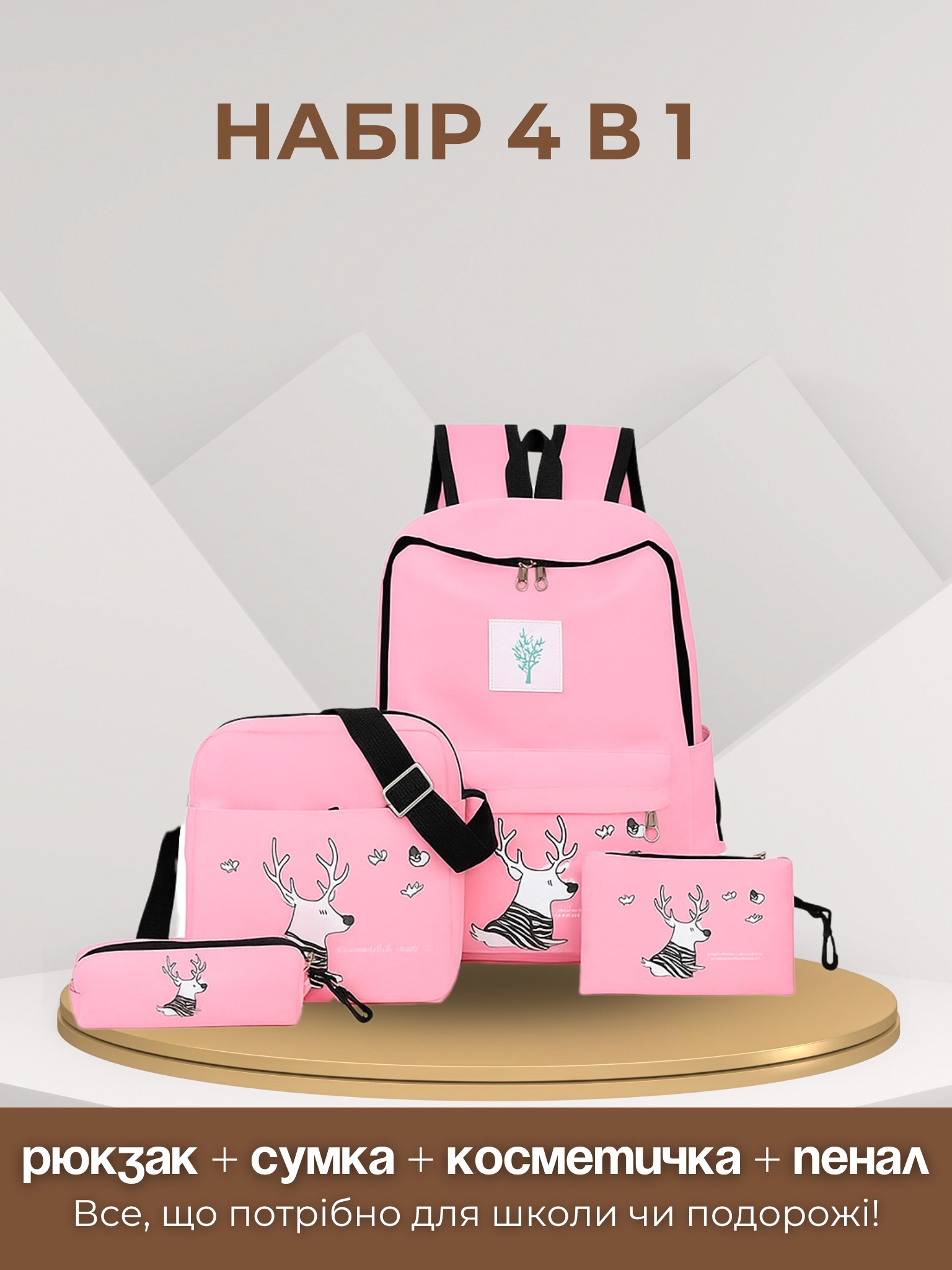 Набір сумок 4в1. Рюкзак, сумка, косметичка, пенал рожевий