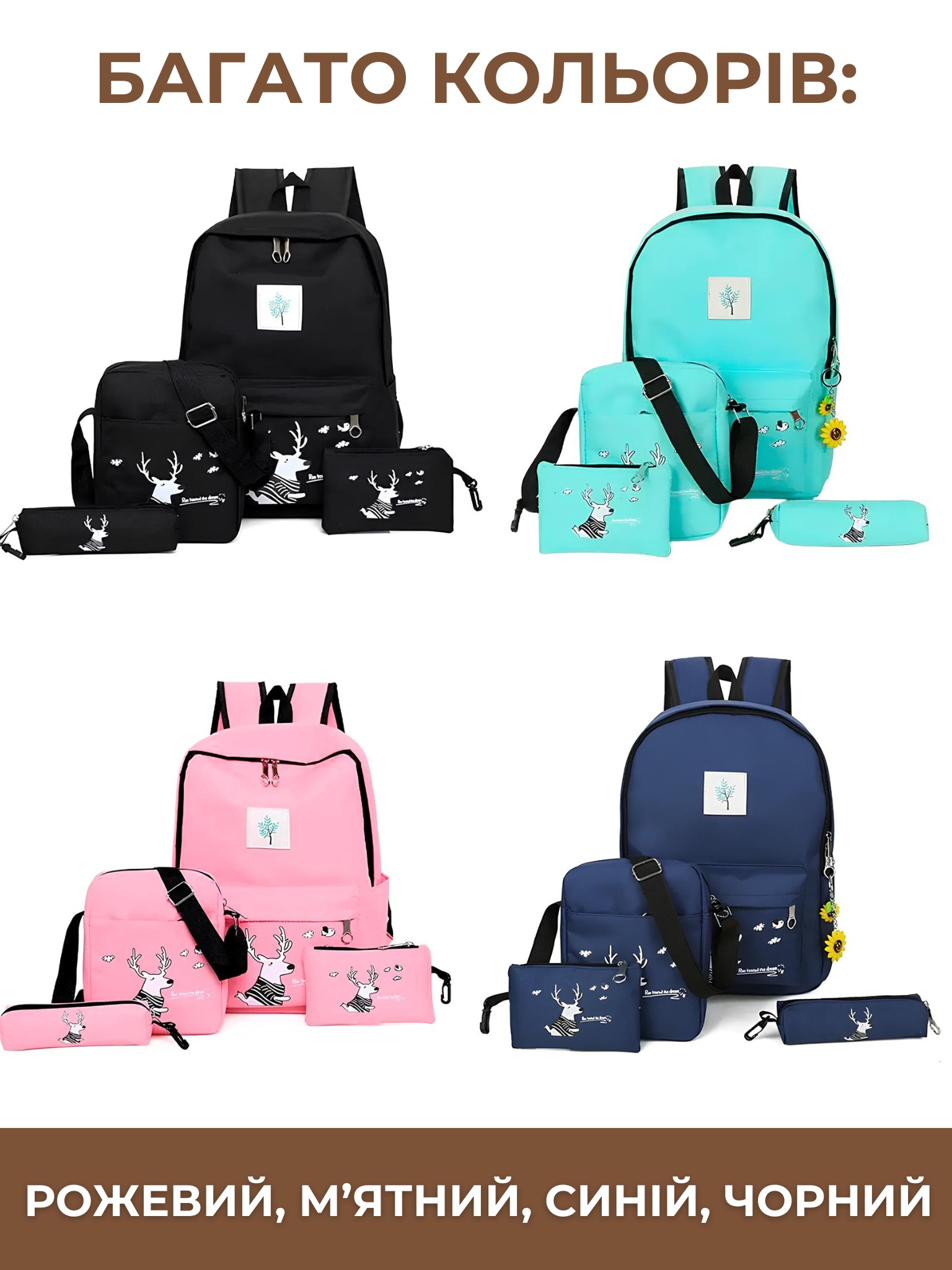 Модний набір 4 в 1 для школярів, місткий рюкзак+сумка+косметичка+пенал. Рюкзак ідеально підходить для школи та повсякденного використання.