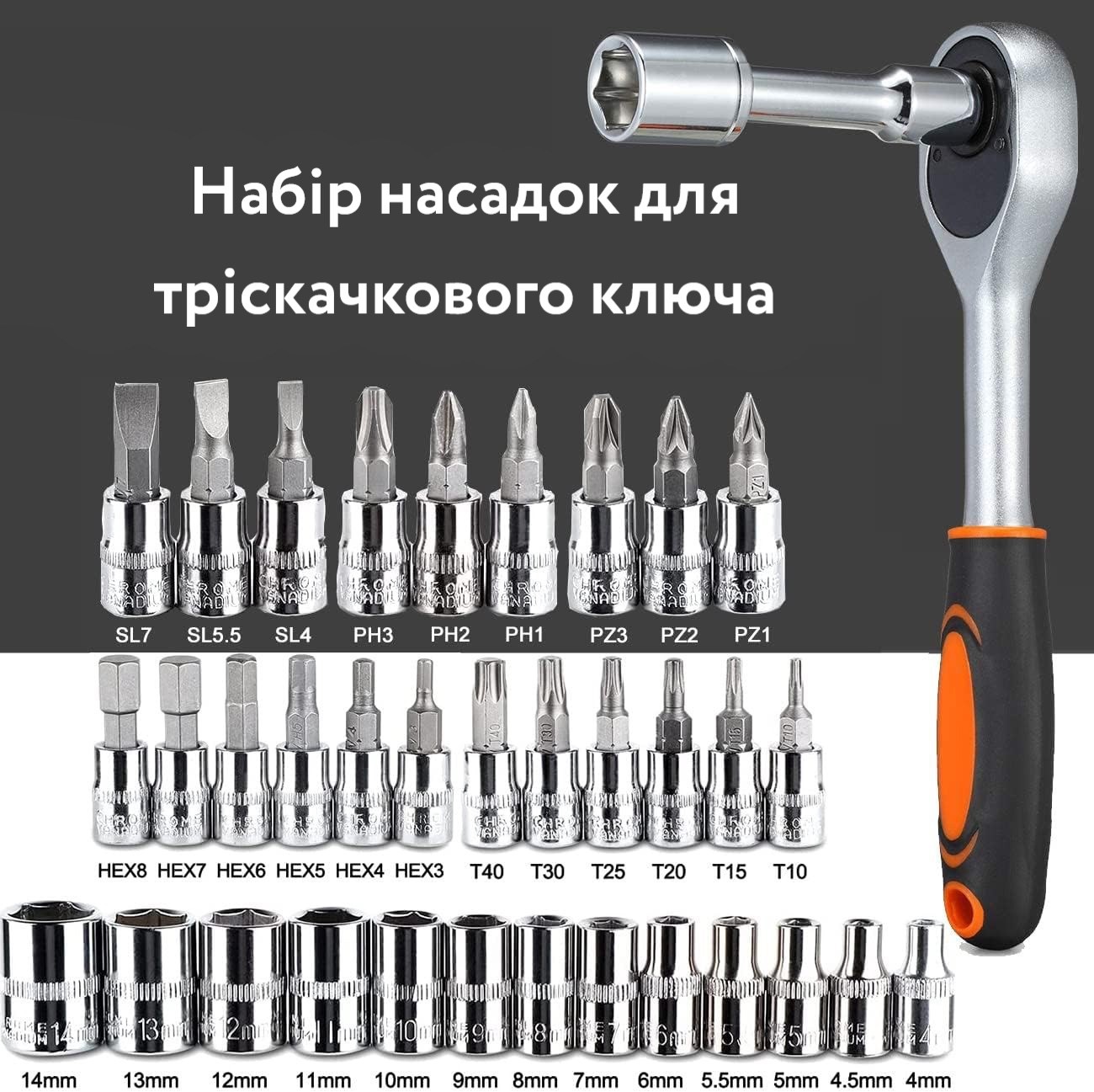 - ГОЛОВКИ ТОРЦЕВІ: 14, 13, 12, 11, 10, 9, 8, 7, 6, 5.5, 5, 4.5, 4