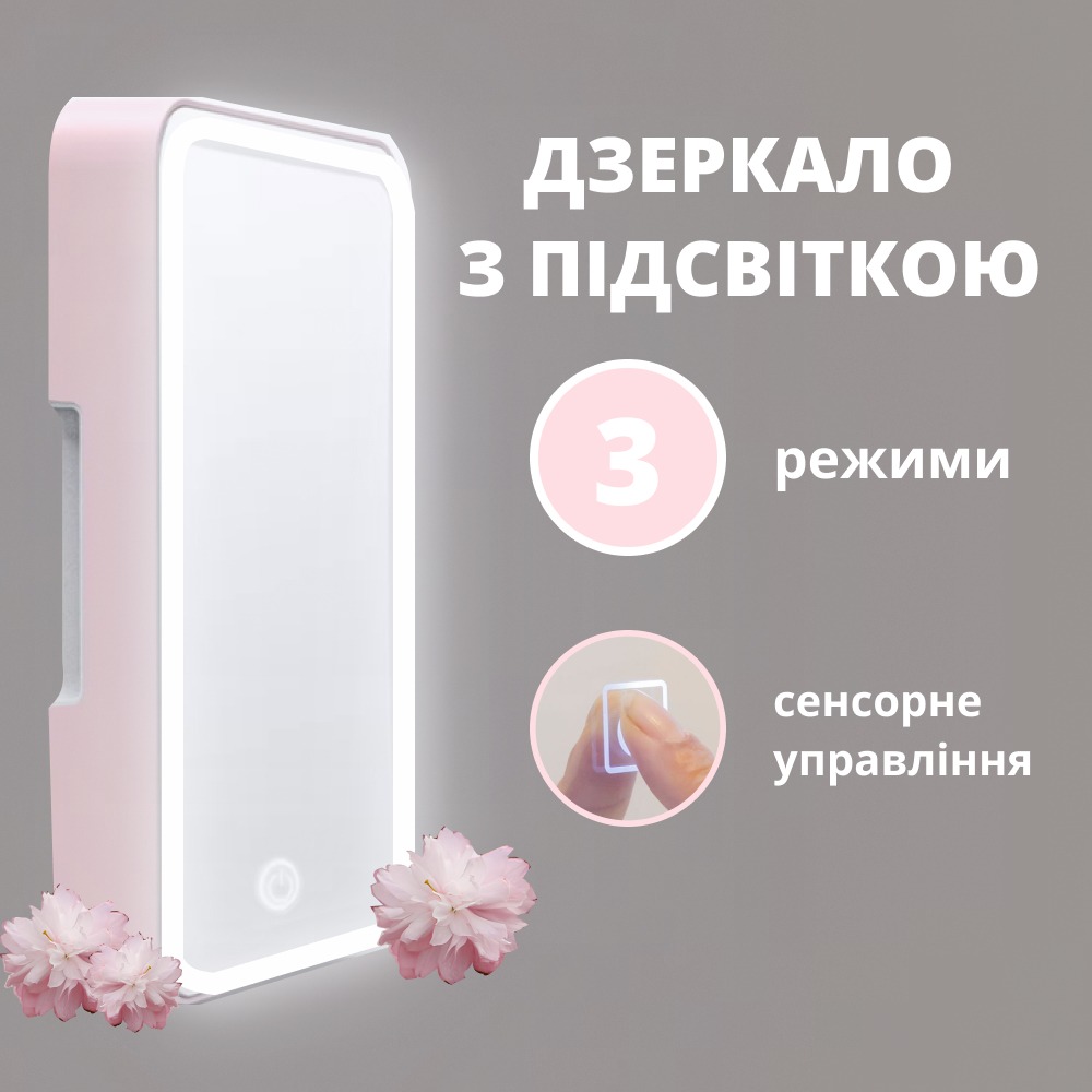 Портативний дзеркальний косметичний холодильник зі світлодіодним підсвічуванням це не просто пристрій для охолодження продуктів, він продовжує термін служби косметики та засобів для догляду за шкірою. Компактний дизайн дозволяє розмістити його на столі, а вбудоване дзеркало високої чіткості з регульованим світлодіодним підсвічуванням допомагає в нанесенні макіяжу.