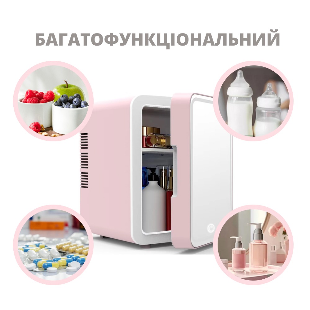 Завдяки дворежимній функціональності (нагрівання та охолодження), цей міні-холодильник ідеальний для зберігання косметики, напоїв, ліків та інших продуктів. Він чудово підходить для використання вдома, в офісі, в дорозі або в гуртожитку, підтримуючи зручність та стиль у будь-якому місці.
