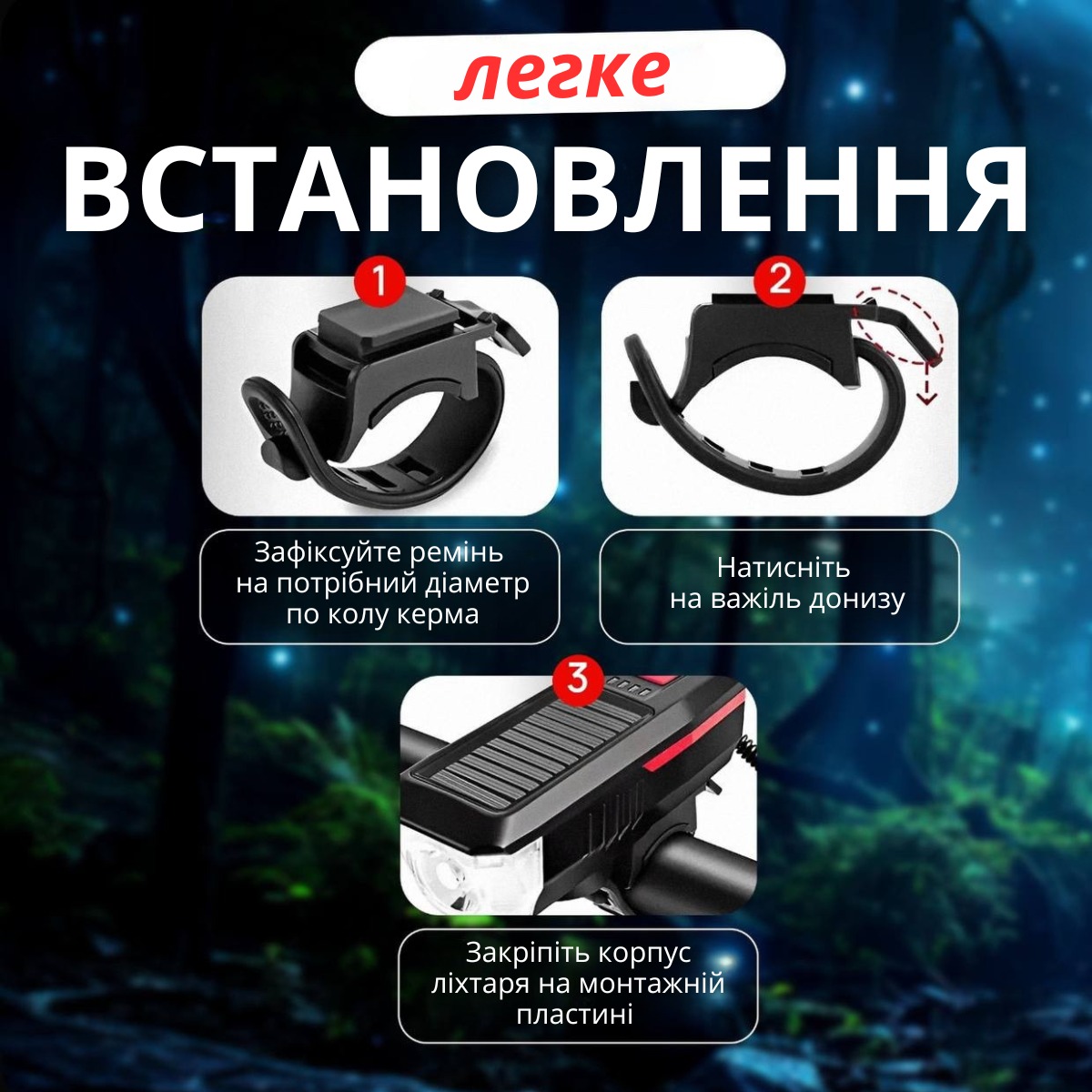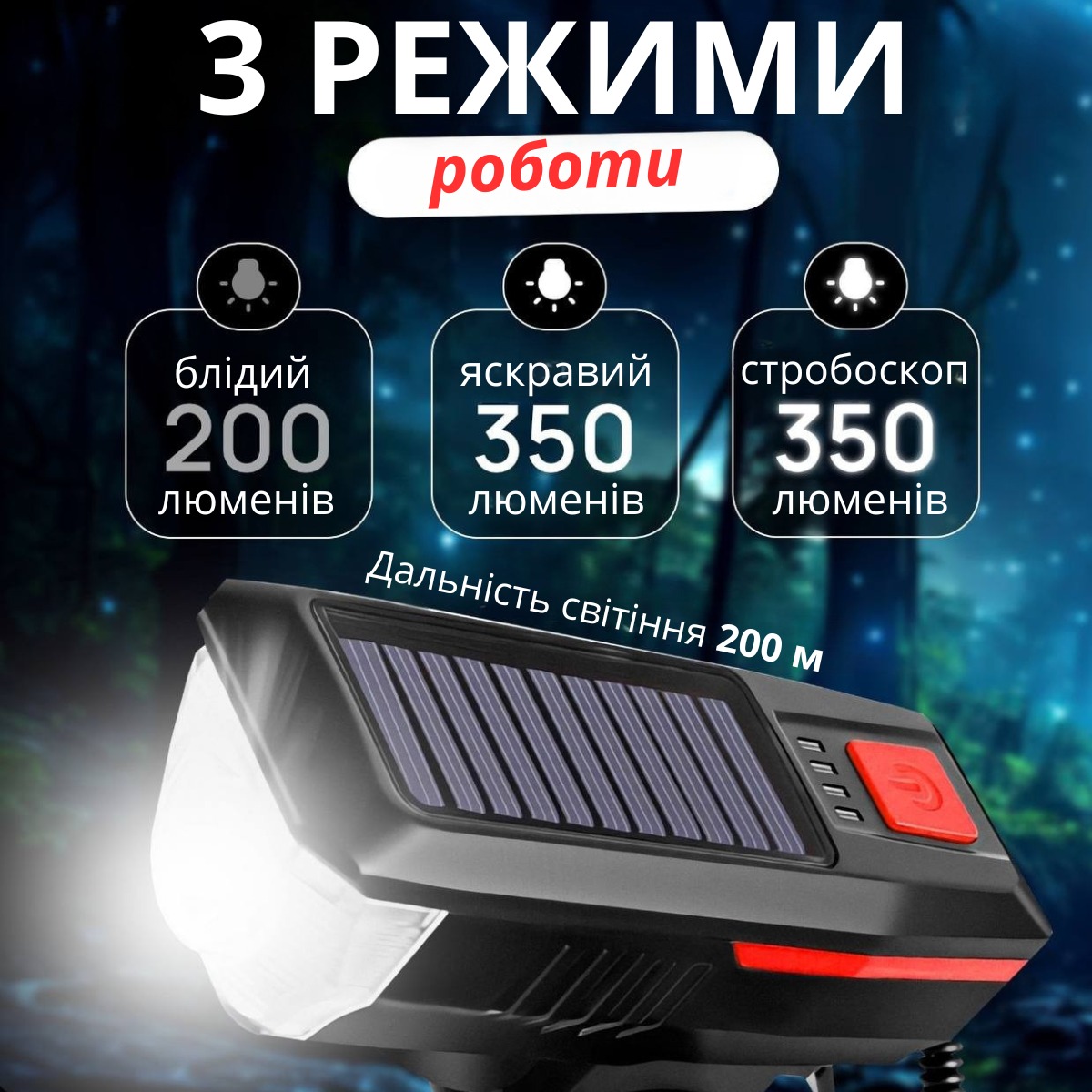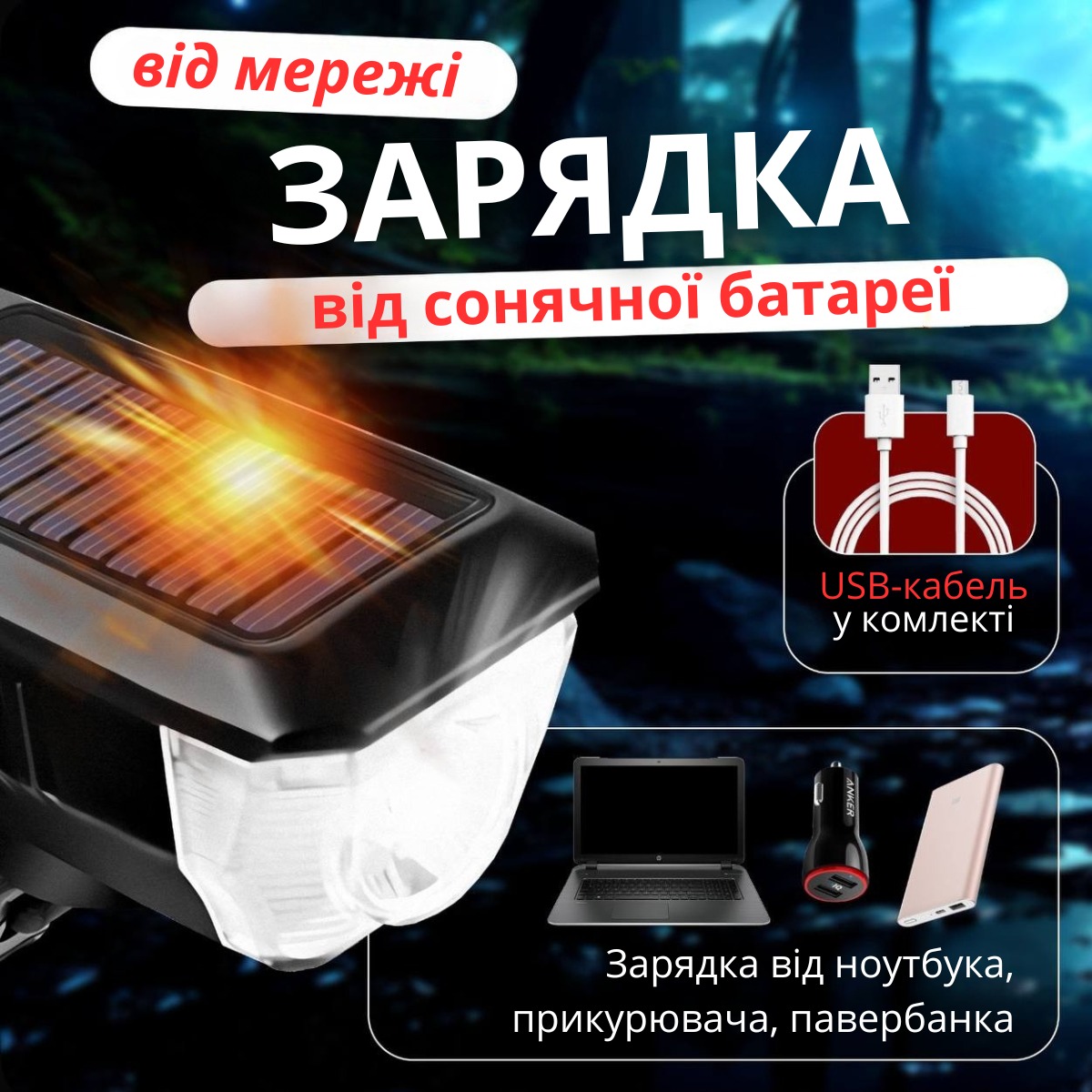 Універсальний велосипедний ліхтар LY17 на сонячній батареї з потужним діодом Т6 і сигналом.