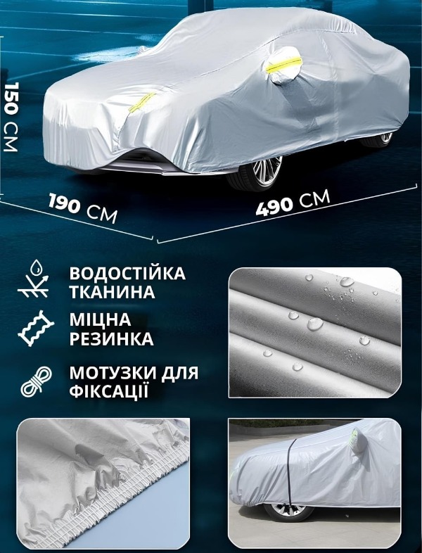 Водонепроникний захисний тент-чохол для автомобіля XL (490x190x150см)
