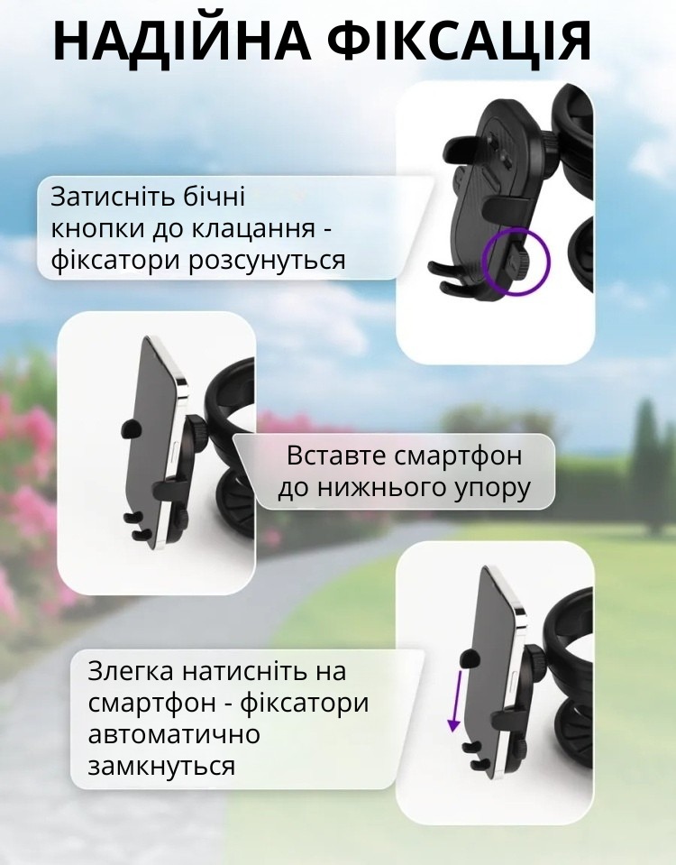Додатково підсклянник оснащений зручним тримачем для мобільного телефону — тепер ви можете користуватися навігатором, слухати музику або залишатися на зв’язку, не відволікаючись від прогулянки.
